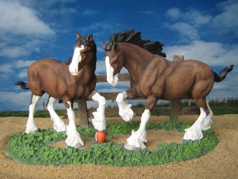 Anheuser Busch resin, CLYD3 lim Ed. 1997, footballspielende Clydesdales, Nr. 7135 mit Zertifikat und Originalkarton, statt € 100,- nur noch € 40,- |