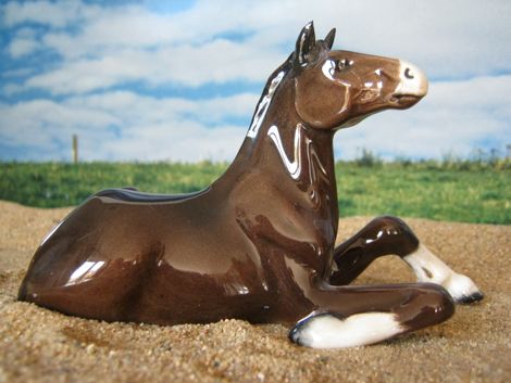 Beswick Lying Shire Foal # 2460 braun glossy, das passende Fohlen zur Granzing Shire Mare, einwandfreier Zustand, produziert nur von 1973 – 1976, € 100,- |